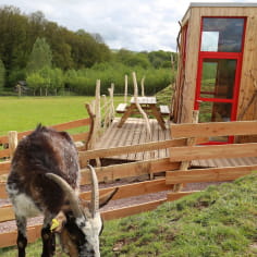 The Cabane du Berger is the perfect accommodation for a family holiday in the heart of nature. It sleeps 5, with 1 double bed for the parents and 1 large net for 3 children. You'll share the daily life of the little white girls Blanquette, Licorne and the Lorrain Olaff, master of the herd. With a few pieces of hard bread and treats, they don't get picky and accept gentle caresses.