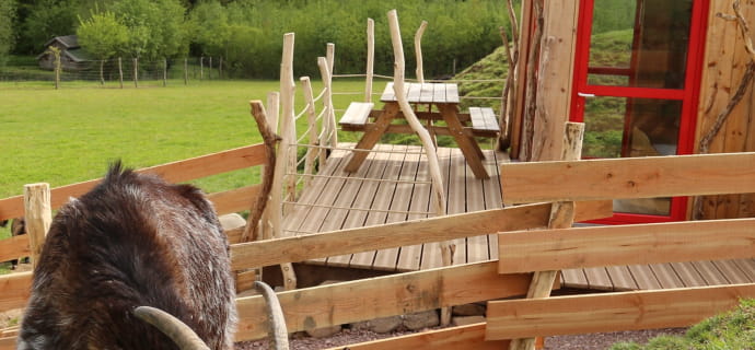 A rejuvenating and captivating stay awaits you in the Cabane du Berger. Set in the middle of the goat park, the Cabane du Berger features wooden walls, a small terrace and landscaped fences. Fir, beech, oak and larch are well orchestrated to create a symphony of elegance and charm. La Cabane is innovative and delivers on its promise of comfort and authenticity.