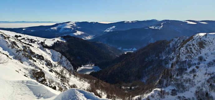 There are 2 itineraries to choose from. Discover Lac Blanc, an enchanting place magnificently dressed in its white coat. Or let yourself be tempted by the stubble fields of the Hohneck, where the vast expanses of snow promise breathtaking panoramas.