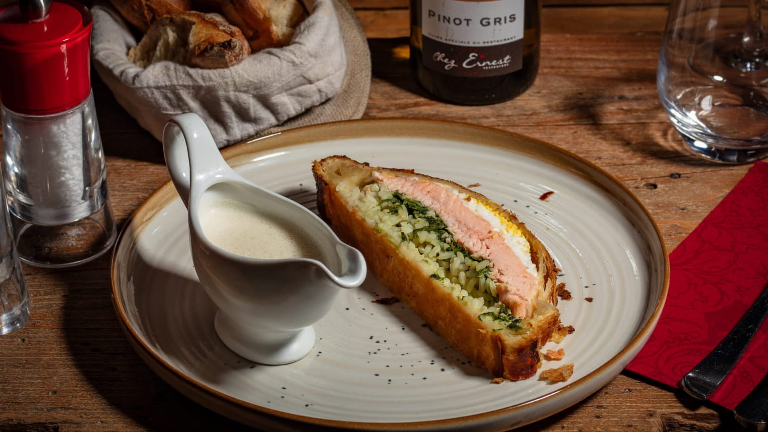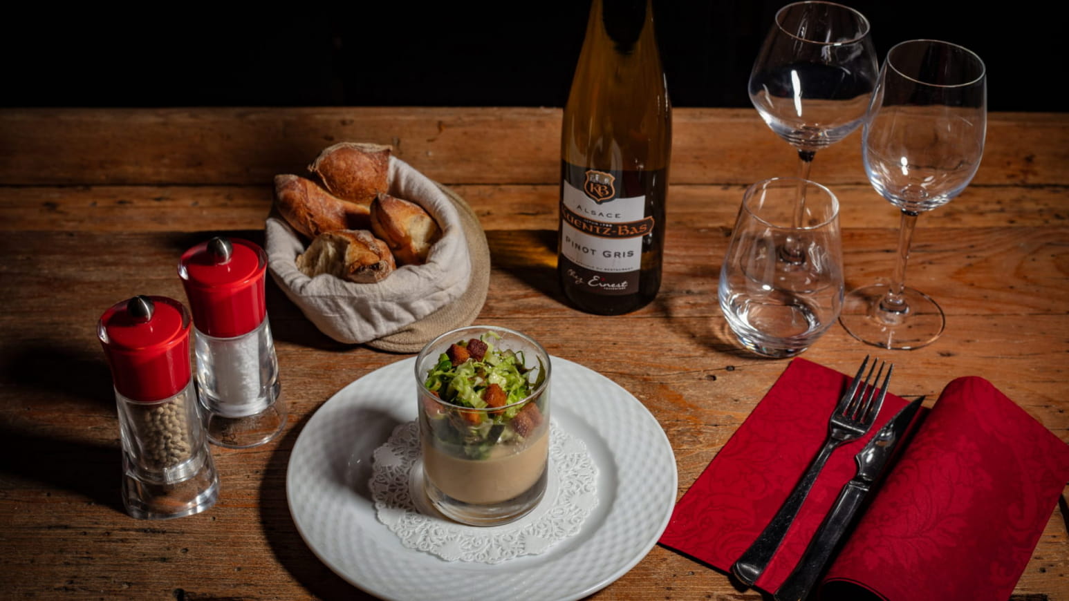 Restaurant Chez Ernest welcomes you to its air-conditioned dining room and veranda, and in summer to its shaded terrace.