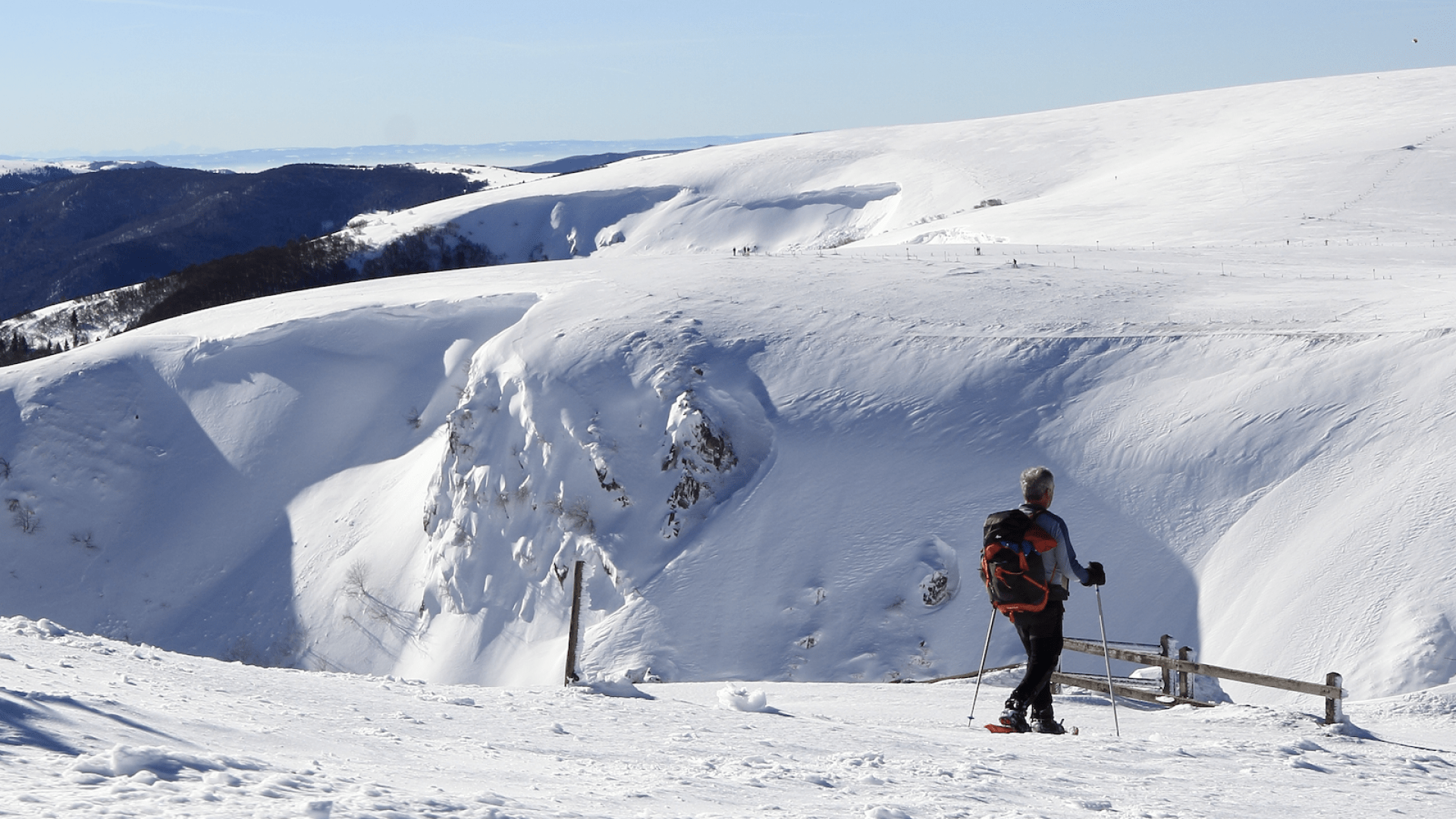 En partant du Markstein, l’itinéraire reste principalement sur les crêtes. Après quelques kilomètres vous atteignez le Grand Ballon, sommet le plus haut du massif vosgien. Celui que l’on appelle aussi le Ballon de Guebwiller culmine à 1 424 mètres d’altitude. A son sommet, vous découvrirez un radar de l'aviation civile et le Monument des Diables Bleus érigé en mémoire des Chasseurs Alpins morts pour la France durant la Première Guerre mondiale.
