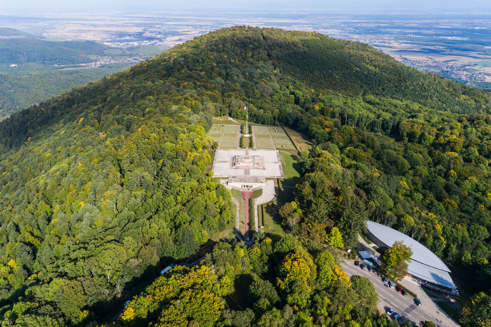 Le sentier se dirige ensuite vers le Hartmannswillerkopf (aussi appelé le Vieil-Armand). Ce promontoire qui s’avance à 956 m d’altitude au-dessus de la plaine d’Alsace était un poste d’observation stratégique âprement disputé durant la Première Guerre mondiale. Les combats y ont duré pendant toute la guerre et ce champ de bataille dévasté est aujourd'hui classé monument historique. Véritable mémorial, le site abrite l’un des quatre monuments nationaux dédiés à cette période tragique. Prolongez votre visite à l'historial franco - allemand situé juste à côté.