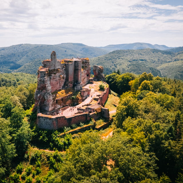La memoria, l'industria tessile, l'artigianato, la pasticceria... i Vosgi sono ricchi di competenze affascinanti. Non esitate a visitare a piedi i numerosi resti di castelli fortificati, come quelli di Fleckenstein, Lichtenberg o Haut-Barr. Costruiti con la famosa pietra arenaria dei Vosgi, sono sparsi per le montagne. Se amate le viste panoramiche, dirigetevi verso il Donon, la montagna sacra del massiccio, o la roccia Dabo, una straordinaria roccia di arenaria rosa che domina la regione di Sarrebourg.