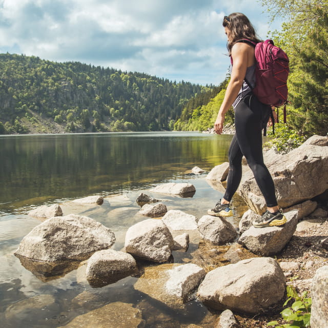 Sotto l'ombra protettiva degli alberi, partite per un percorso d'avventura sugli alberi prima di assaporare il piacere dell'escursionismo su uno dei numerosi sentieri segnalati. Scoprite ad esempio la Traversée du Massif des Vosges, un emblematico percorso escursionistico a lunga distanza che attraversa il massiccio dei Vosgi da nord a sud per oltre 400 chilometri, compresa la stazione del Lac Blanc!