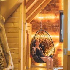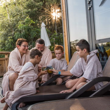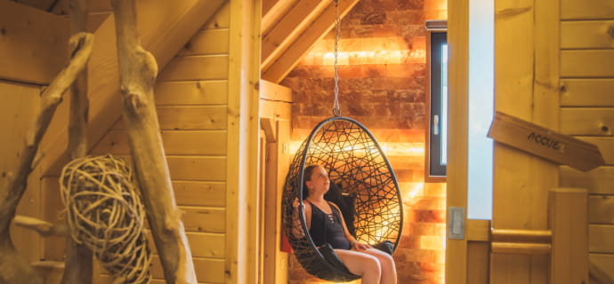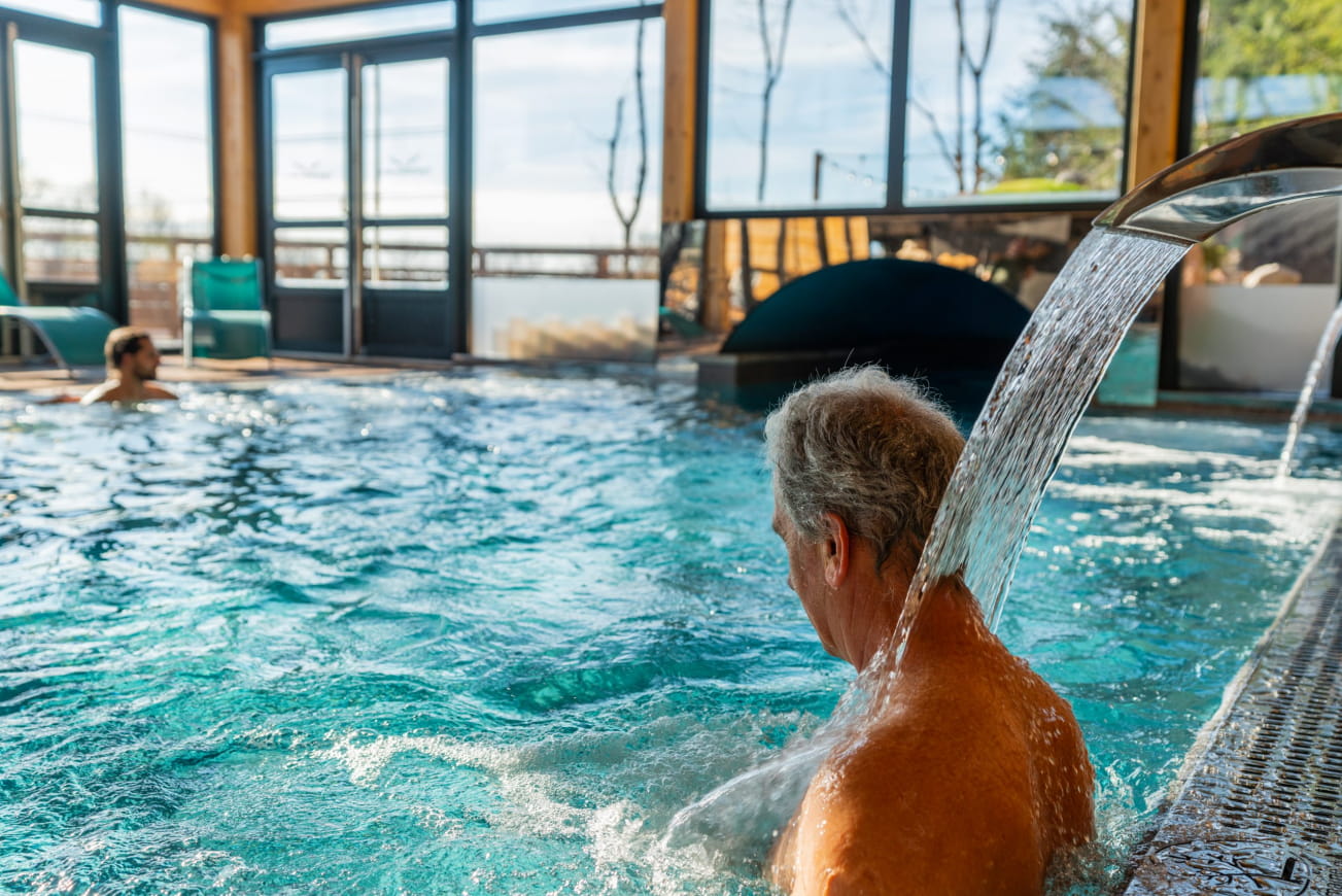 Alternando periodi caldi, freddi e di riposo, il termorilassamento vi porterà poi nella sauna della foresta con doccia integrata. Vi attende una sessione di relax a 90°C, seguita da un bagno freddo a 8°C che vi risveglierà sicuramente. Per esperienze di massaggio uniche, è disponibile anche un osservatorio sensoriale con 2 lettini galleggianti massaggianti a un costo aggiuntivo. È inoltre possibile accedere alla grotta dei massaggi a un costo aggiuntivo (su prenotazione).