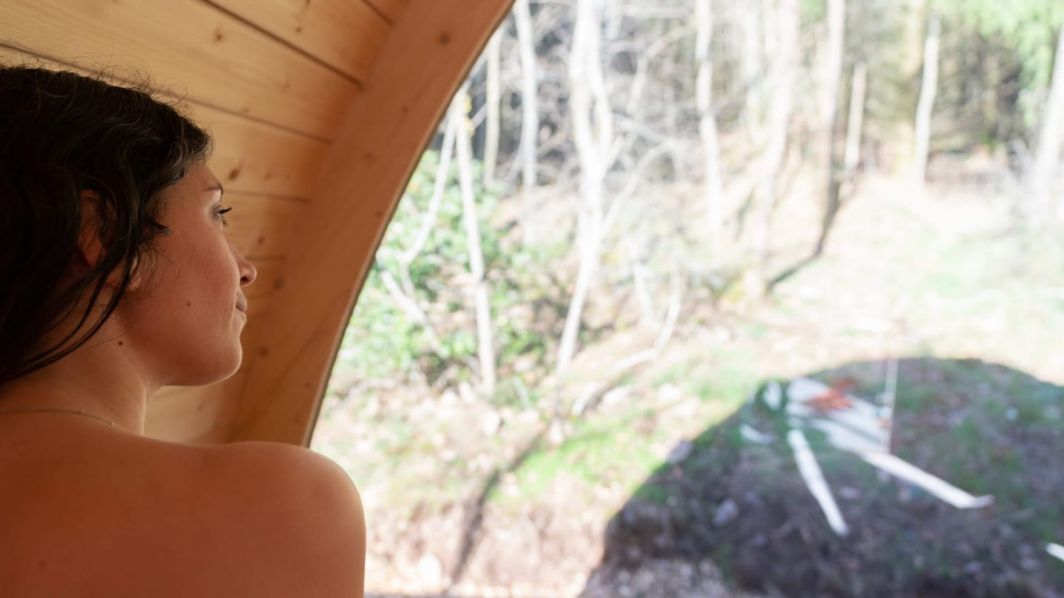 Rilassatevi nella sauna in mezzo alla foresta a 90°C, poi immergetevi nel bagno freddo. Per un momento di riposo, nell’area minerale sono disponibili letti a infrarossi.