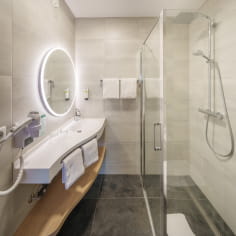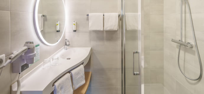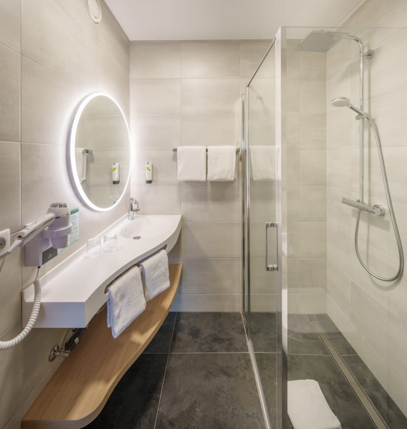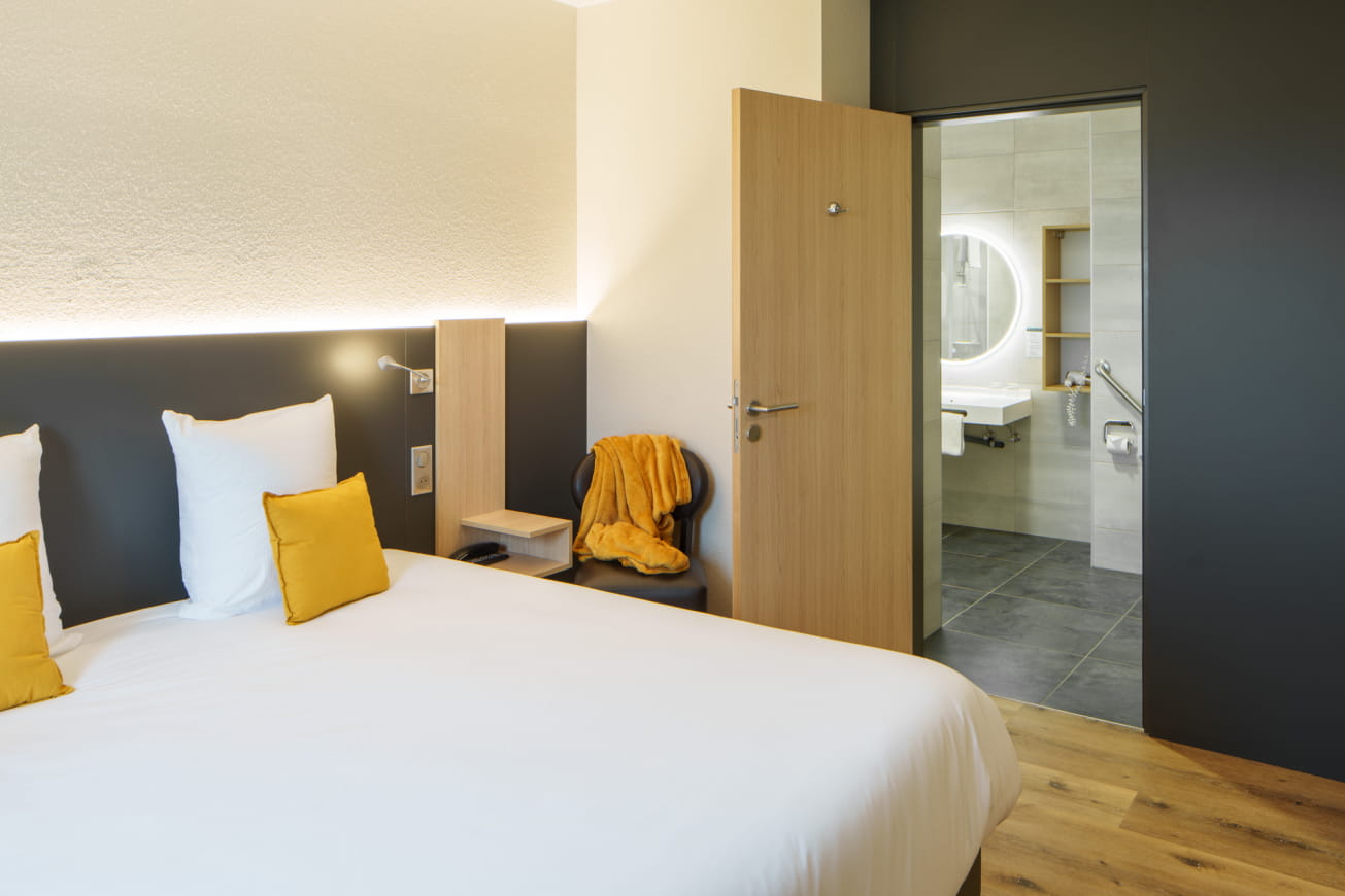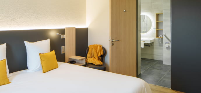 Durante questa pausa di scoperta, sarete accolti in una camera doppia con cabina doccia, perfetta per rilassarsi dopo una giornata intensa. L’arredamento sobrio e raffinato vi immergerà in un’atmosfera calda e rilassante, mentre i servizi disponibili vi garantiranno un soggiorno spensierato.
