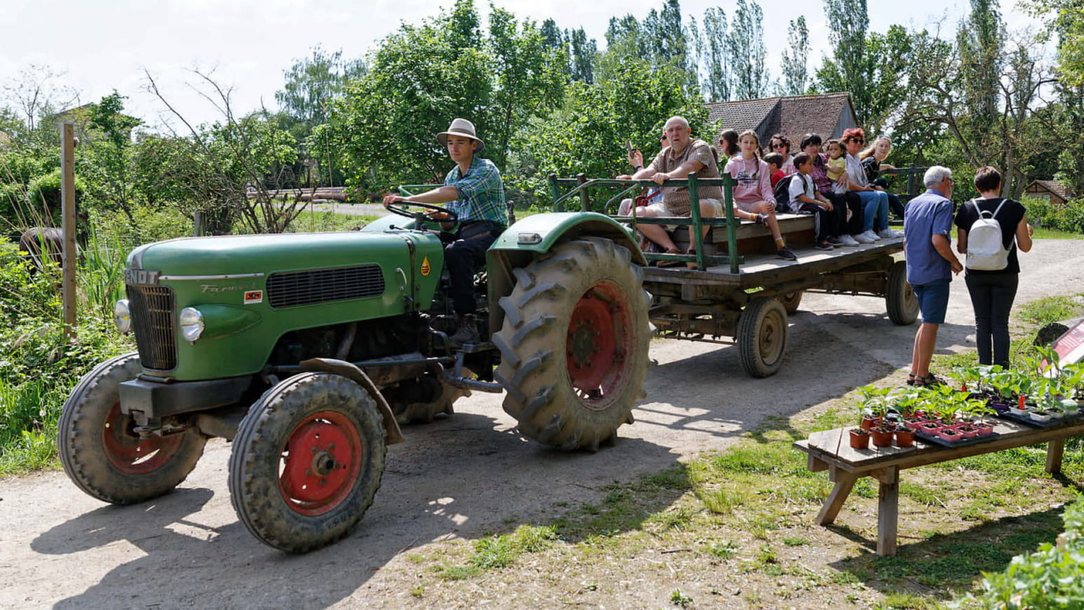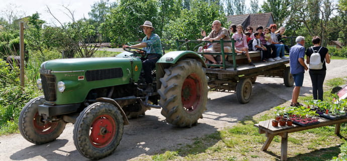 In visita con gli amici o la famiglia, partecipate alle attività che scandiscono le giornate nel villaggio: mungere le mucche, nutrire i maiali, visitare l'apiario, fare gite in barca... e assaggiare le ricette tradizionali preparate alla Maison des Goûts et des Couleurs...