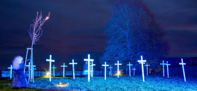 Sabato 2 novembre, una serata paurosa farà la gioia anche dei più grandi, con sfide avvincenti contro creature oscure. Zombie, fantasmi… attenzione a ciò che incontrerete in ogni angolo del castello. Dopo questo terrificante tour, non perdetevi lo spettacolo sciamanico « Völva », che combina leggende ancestrali e spettacolari giochi di fuoco, o la proiezione del film horror Overlora. Riuscirete a mantenere la calma?