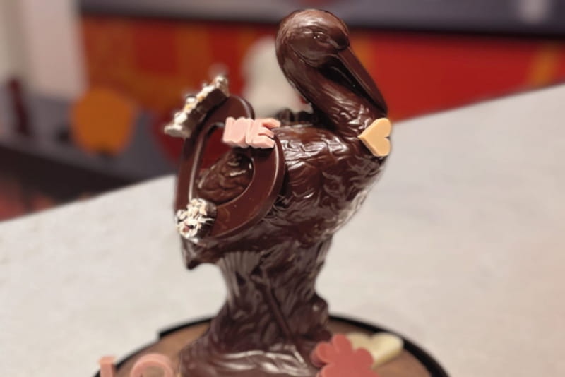 Durante questo laboratorio coinvolgente, potrete utilizzare un cono riempito di cioccolato per creare il vostro pezzo personale. Personalizzate la cicogna utilizzando le diverse combinazioni di cioccolato proposte.