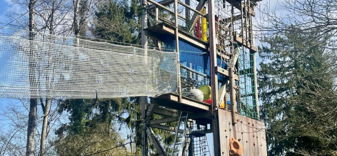 Distribuiti su 5 ettari di foresta, i percorsi di accrobranche del Parc Terraltitude sono un modo divertente per scoprire la natura. Reti, staffe, altalene sospese, pareti di corda, scale, ponti, trapezi e travi, passerelle... Sono stati allestiti più di 140 giochi diversi per offrire un'esperienza divertente.