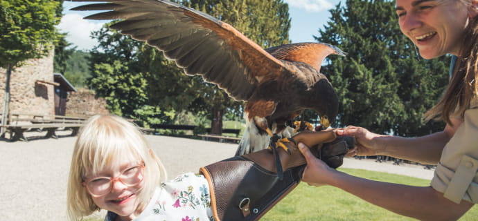 Immergetevi nel mondo dei rapaci, finora inesplorato dai visitatori! Allora prenotate il vostro biglietto per la Volerie des Aigles a Kintzheim in Alsazia!