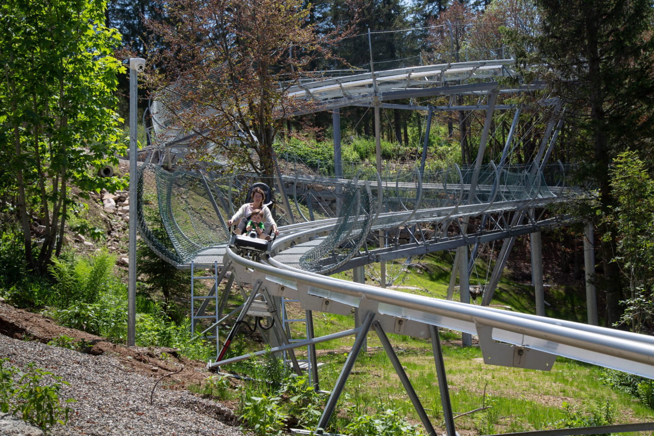 La slitta offre un percorso sensazionale con 13 tornanti e una curva a 450°. Il circuito è arricchito da 2 chicane con flip-flap e 2 salti per deliziare tutti gli appassionati di attività estreme. Ha un dislivello negativo di 78 metri, con pendenze massime del 35%, e richiede solo 7 minuti per essere completato. Lo slittino attraversa anche 2 passerelle rialzate e 5 onde. Passa attraverso un tunnel e scivola sulle piste da sci e sulle piste per mountain bike.