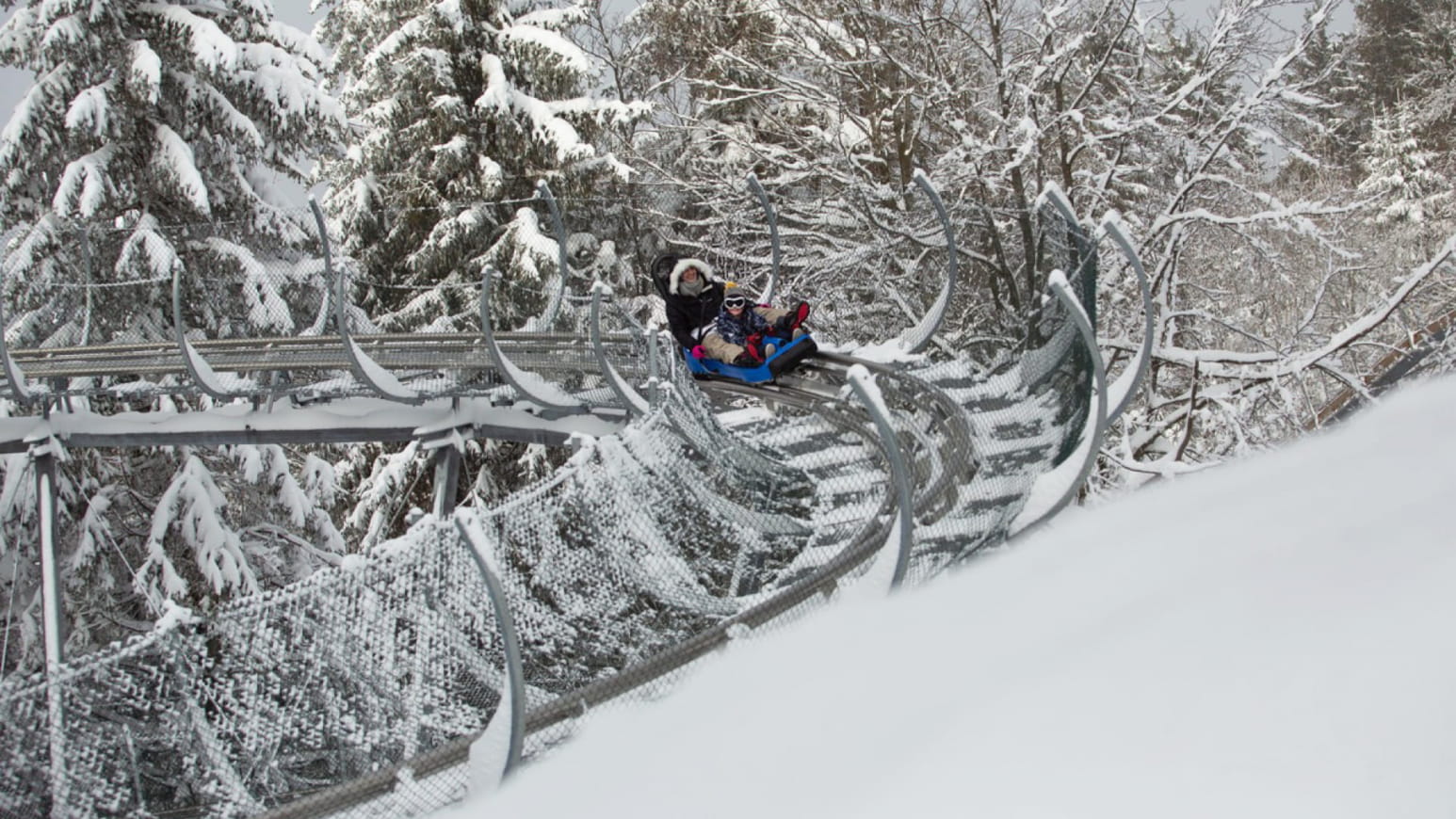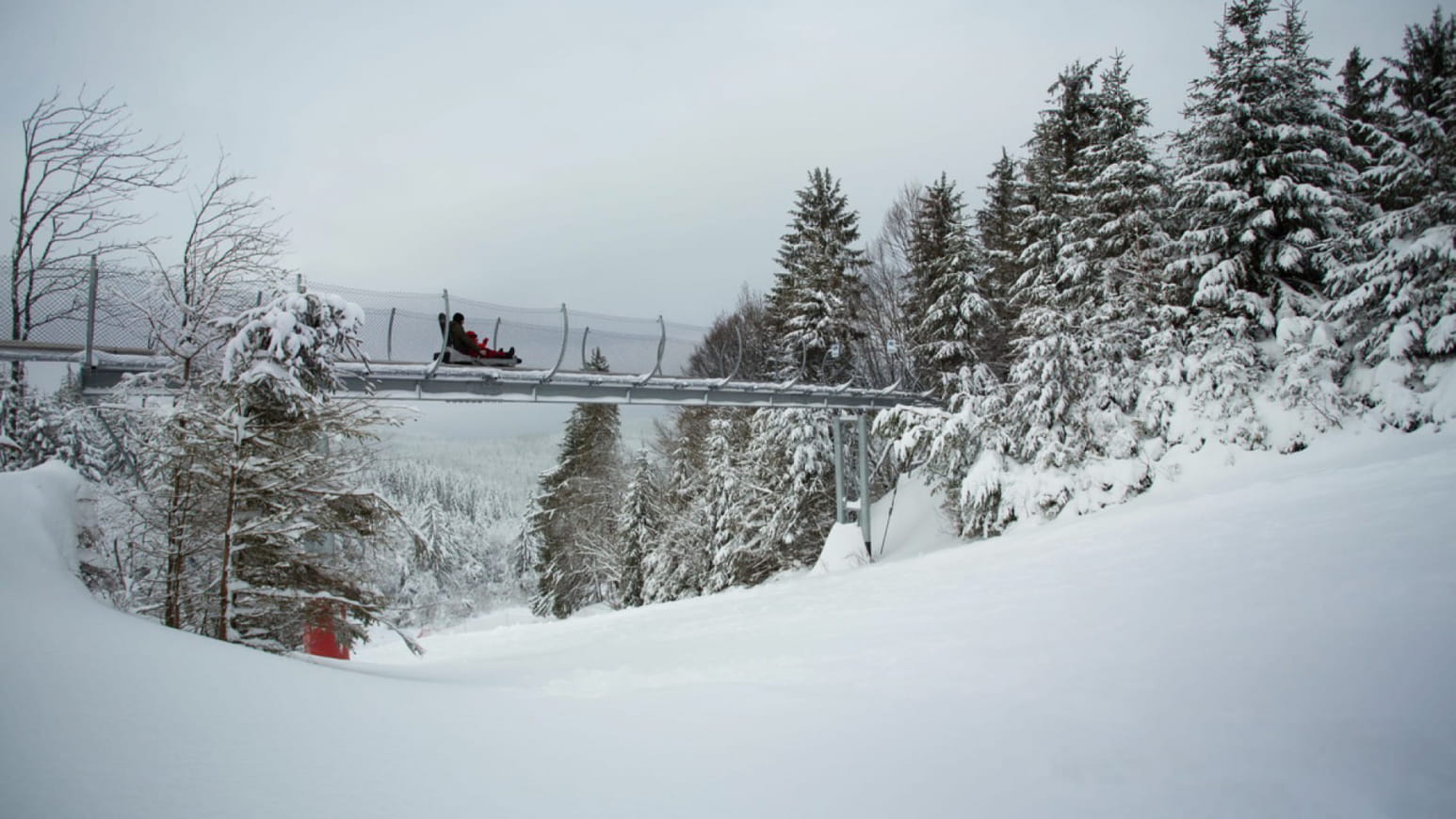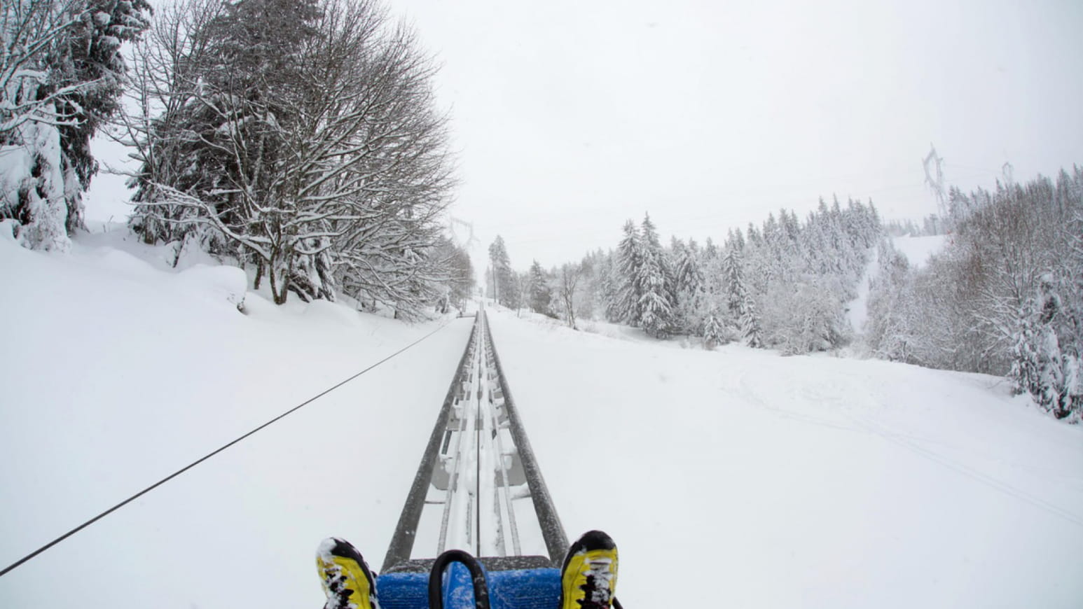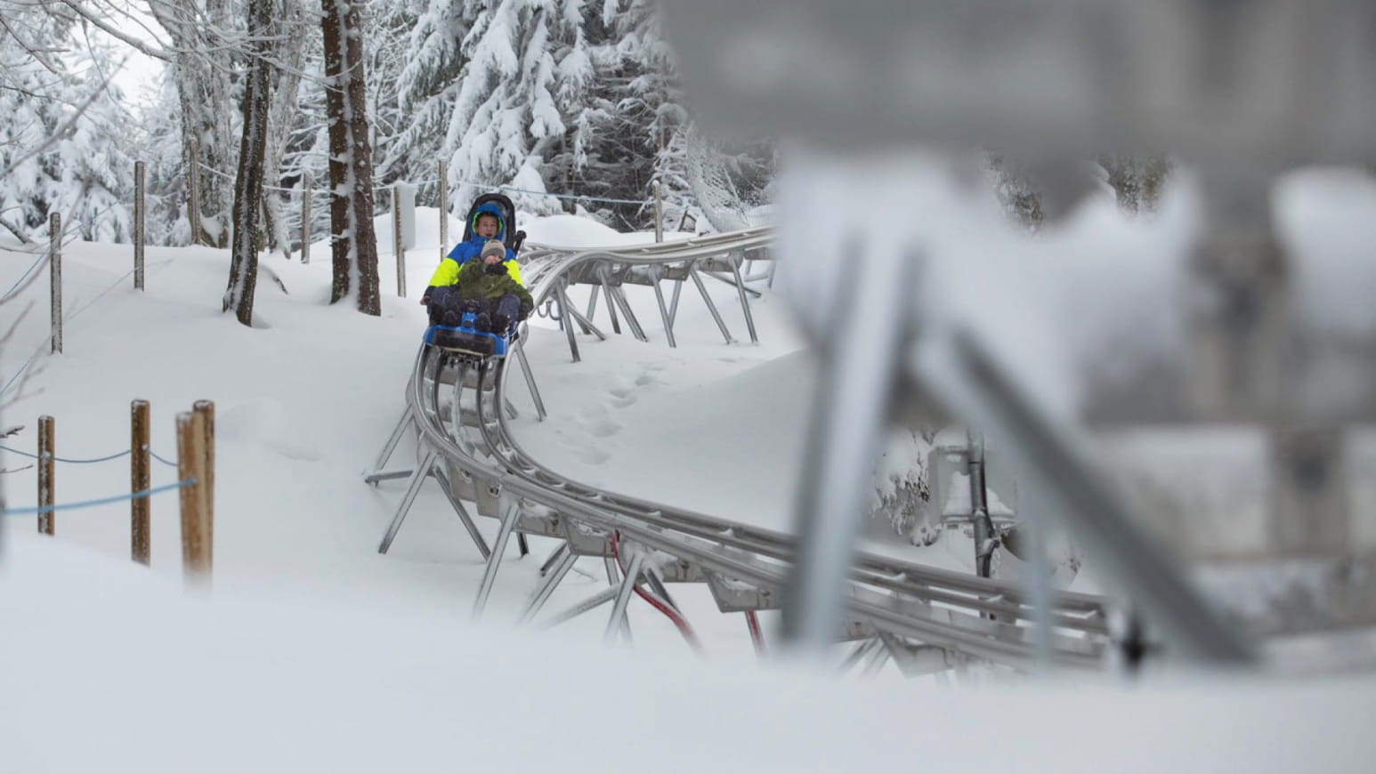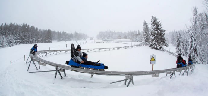 Emozioni garantite sulle alture dei Vosgi! La pista da slittino Tricky Track invita gli appassionati di sport di montagna a vivere un'esperienza unica nel cuore della natura, al Col du Calvaire.