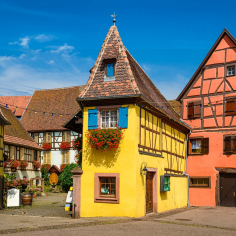 Eguisheim: una vera festa per gli occhi, con le sue case a graticcio dai tetti a punta dai colori vivaci e le facciate piene di fiori. A prima vista sono affascinanti, ma poi ci si immerge in un'atmosfera calda e allegra. Eguisheim è stata preservata dalle ingiurie del tempo e ha mantenuto intatto il suo apprezzato stile medievale.