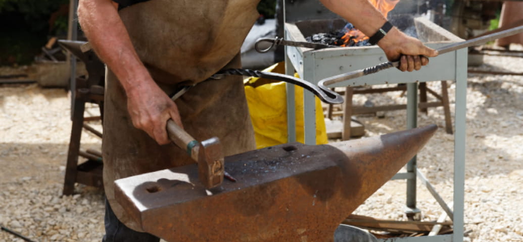 Questo corso vi darà le chiavi per padroneggiare il riscaldamento (che noi chiamiamo "a caldo") e la battitura e vi condurrà verso l'autonomia. Sarete in grado di piegare, allungare, torcere, immergere, forare e affettare il metallo a vostro piacimento. Carbone, ferro, forgia, equipaggiamento protettivo e strumenti saranno a vostra disposizione. Durante le pause, inoltre, verranno fornite informazioni e discussioni per aiutarvi a comprendere il mestiere, i diversi ferri utilizzati e le loro applicazioni. Il ferro è riciclabile all'infinito e la forgiatura permette anche di utilizzare ferro direttamente riutilizzato.