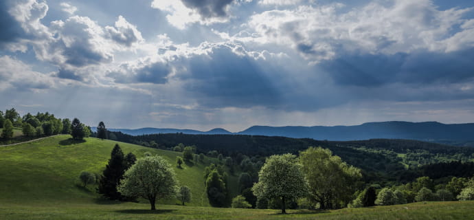 A soli 45 minuti a ovest della metropoli alsaziana, la valle della Bruche si estende dai contrafforti nel cuore dei Vosgi centrali fino ai confini della Lorena. Questa valle, delimitata dalle cime più alte del Basso Reno, combina massicci forestali, pascoli di media altitudine e campi di stoppie alte.