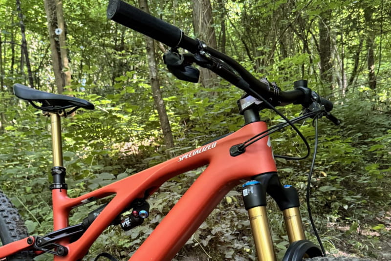 - Telaio in carbonio, gruppo Sram X01 Eagle, ruote Roval Traverse e sospensioni Fox.