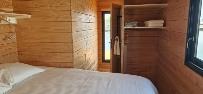 Mettetevi comodi nella vostra casa galleggiante, realizzata in Francia, che unisce il comfort moderno al rispetto dell’ambiente. Con le sue due accoglienti cabine, il salone conviviale e la cucina completamente attrezzata, questo alloggio può ospitare fino a 6 persone. La sua terrazza panoramica offre momenti di relax indimenticabili, con tramonti spettacolari.