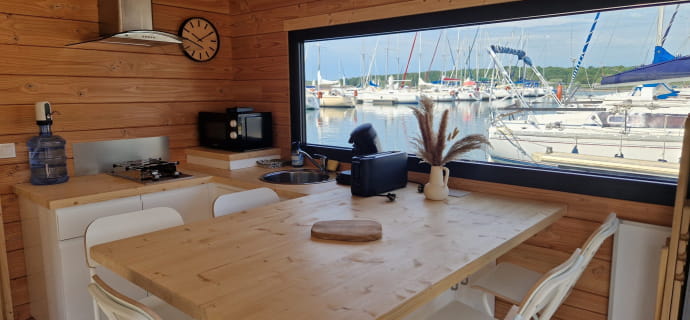 - Soggiornate in una casa galleggiante ecologica, che unisce il comfort moderno al rispetto dell'ambiente.