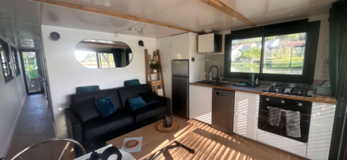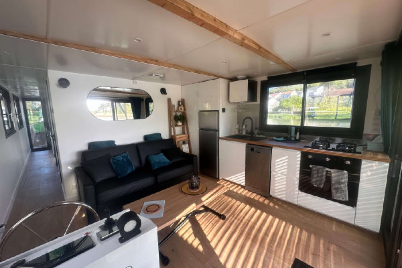 A bordo, tutto è pensato per il vostro comfort: salotto con divano in pelle, cucina completamente attrezzata, servizi igienici, solarium e terrazza coperta. La House Boat, progettata nel 2023 ad Arcachon, funziona a energia solare e dispone di un sistema di filtraggio delle acque reflue che la rende parte di un approccio fortemente ecologico. L’esperto skipper vi assicura un viaggio tranquillo, mentre ammirate il paesaggio e la flora e la fauna locali.
