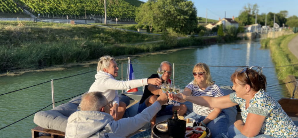 Questa gita lungo la Marna e i canali, costeggiati dalle prestigiose colline della Champagne tutelate dall’UNESCO, può ospitare fino a 8 persone. Da Aÿ, scegliete il vostro itinerario: a sud verso Hautvillers o Épernay, o a est verso Condé-sur-Marne passando per Bisseuil e Tours-sur-Marne. In ogni tappa, potrete incontrare produttori indipendenti di Champagne e scoprire la loro esperienza durante le visite e le degustazioni nelle loro tenute.