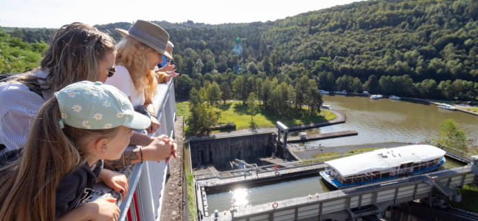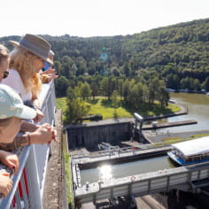La visita autogestita del sito comprende: la visita alla nuova esposizione permanente, l’accesso alla piattaforma alta per assistere alle manovre, la visita alla chiatta museo “Sophie-Marie” e poi alla sala macchine.