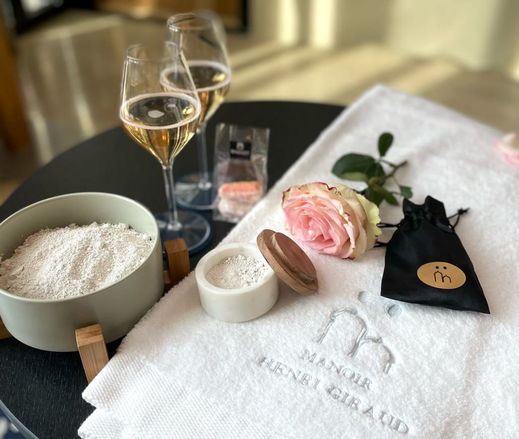 Craÿoterapia, applicazione e bagno di gesso, godetevi i benefici di questo materiale fine e untuoso con microrganismi millenari degustando un flute di champagne.