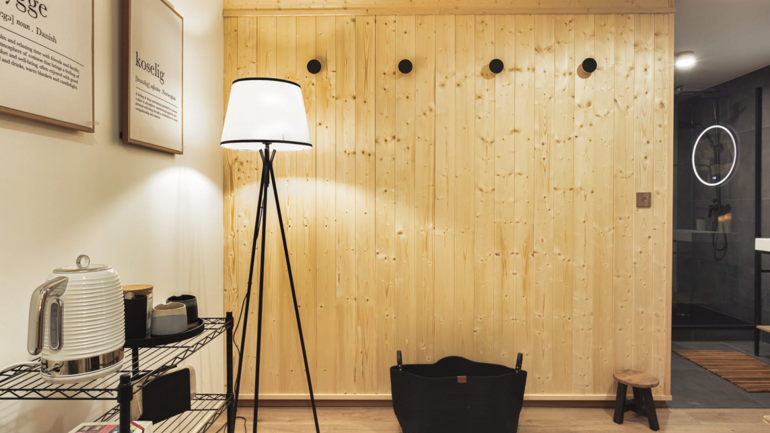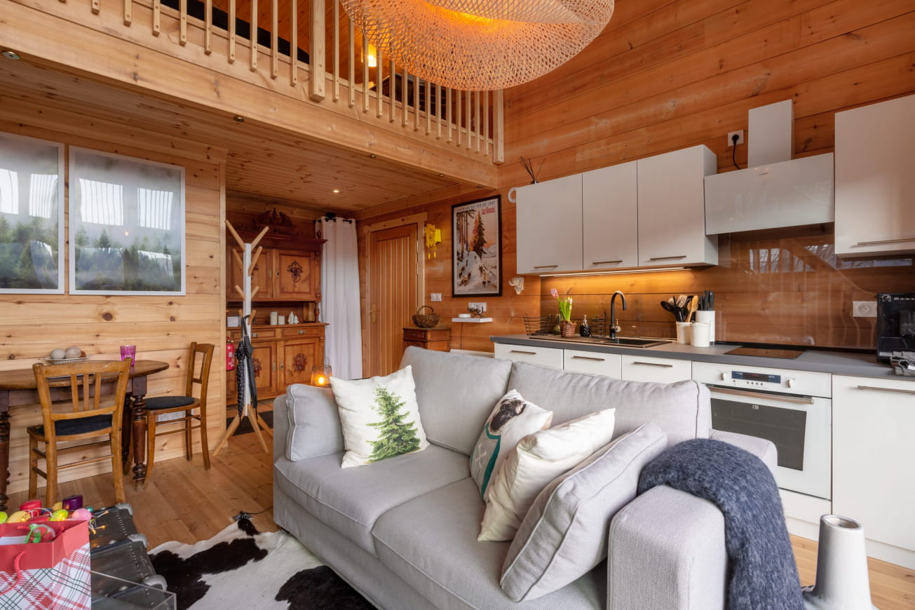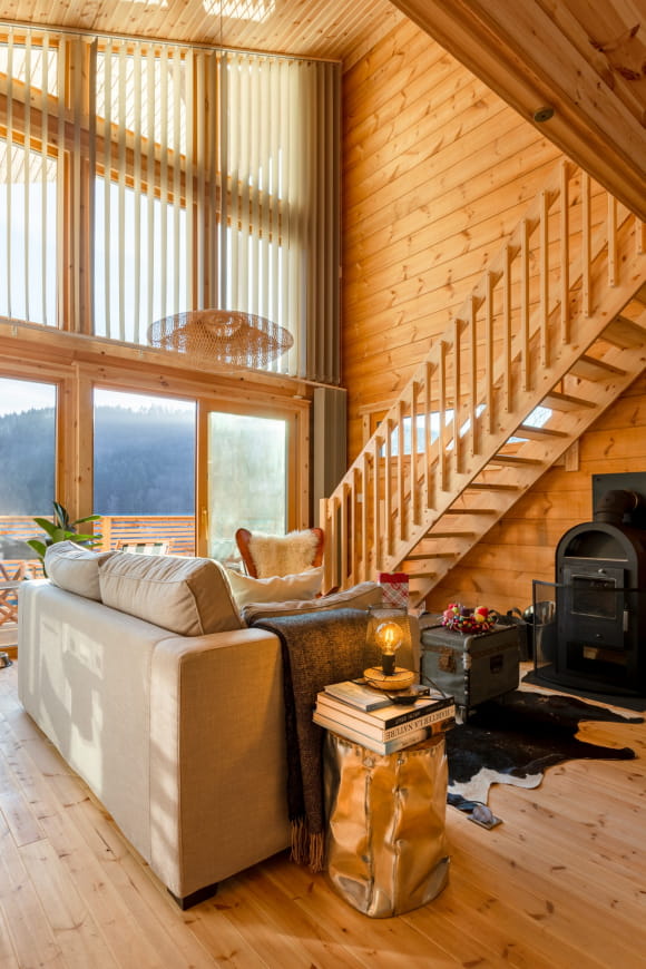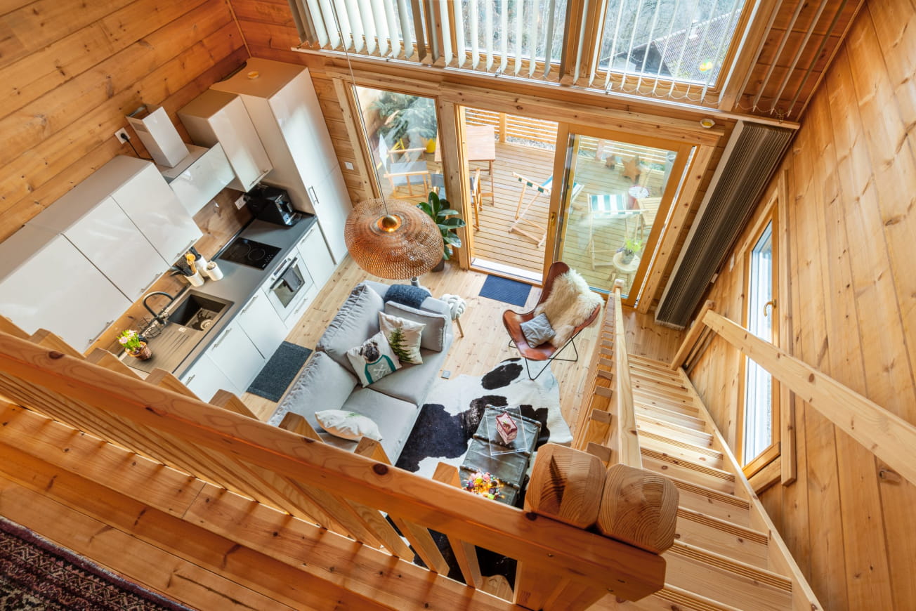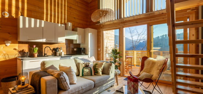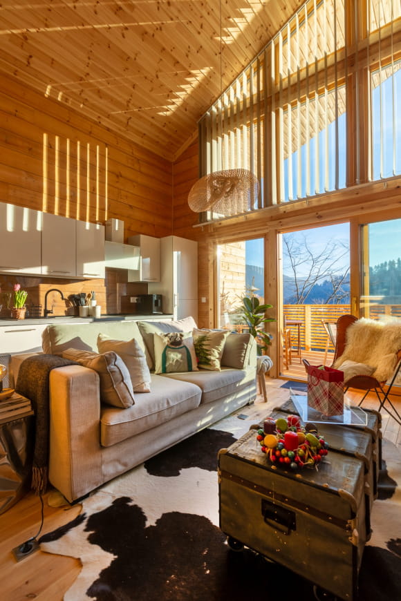 Lasciate che la luce entri e godetevi la sensazione di calma e tranquillità. Dopo una notte di sonno ristoratore nel vostro letto arroccato, avrete sicuramente voglia di una colazione gourmet, che potrete preparare a vostro piacimento nella cucina completamente attrezzata. Nello chalet c’è anche un bagno separato e in inverno c’è la legna per riscaldarsi.