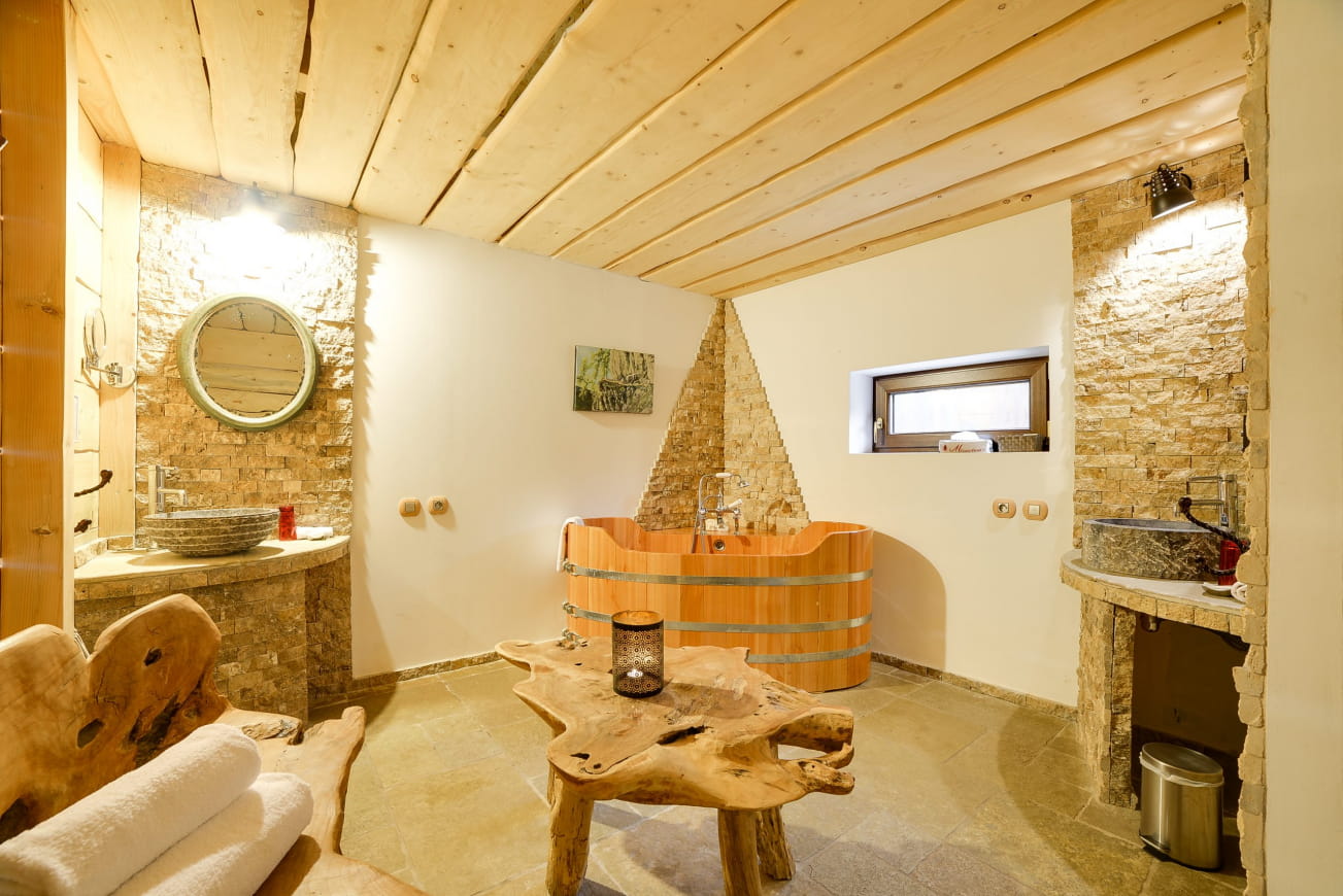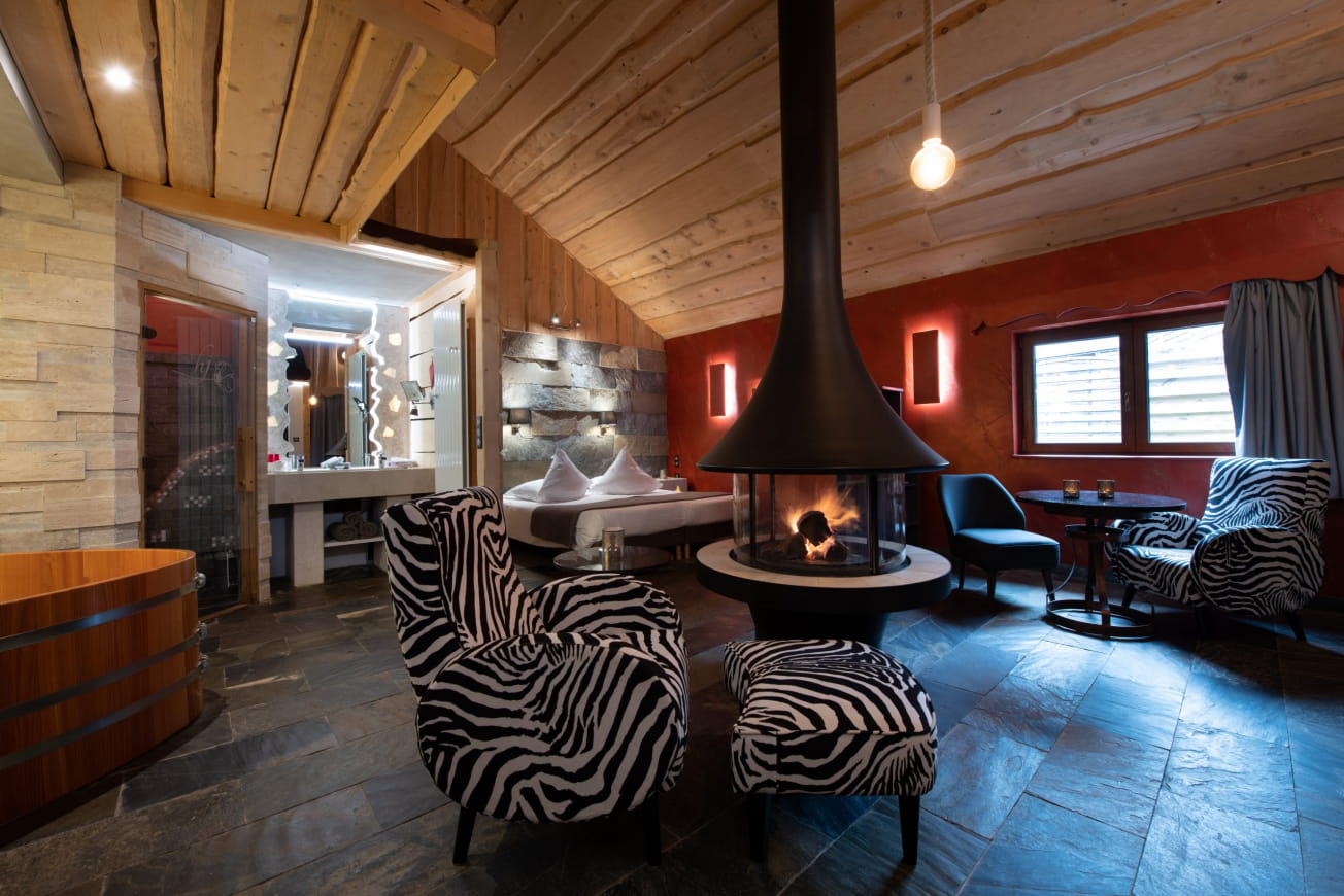 Al vostro arrivo, sarete accolti calorosamente con una bottiglia di champagne nel vostro chalet. Una bottiglia che potrete stappare mentre vi godete un bagno di mezzanotte nella vasca idromassaggio, al riparo dalla vista sulla terrazza coperta.