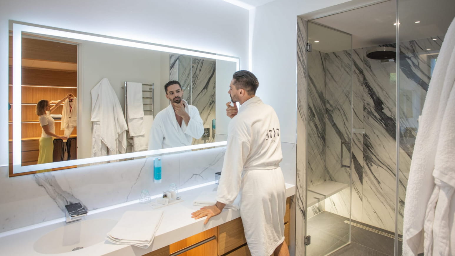 L'accesso alla Spa del 6717 è incluso nel vostro pernottamento: aree interne ed esterne (in stagione) dedicate al relax e al benessere, con piscine, saune, hammam, sala relax e fitness, sale per trattamenti, ecc. Se non preferite godervi un buon sonno nella vostra Grand Deluxe Spa Suite, scoprirete e gusterete una colazione gourmet a buffet per concludere il vostro soggiorno in bellezza.