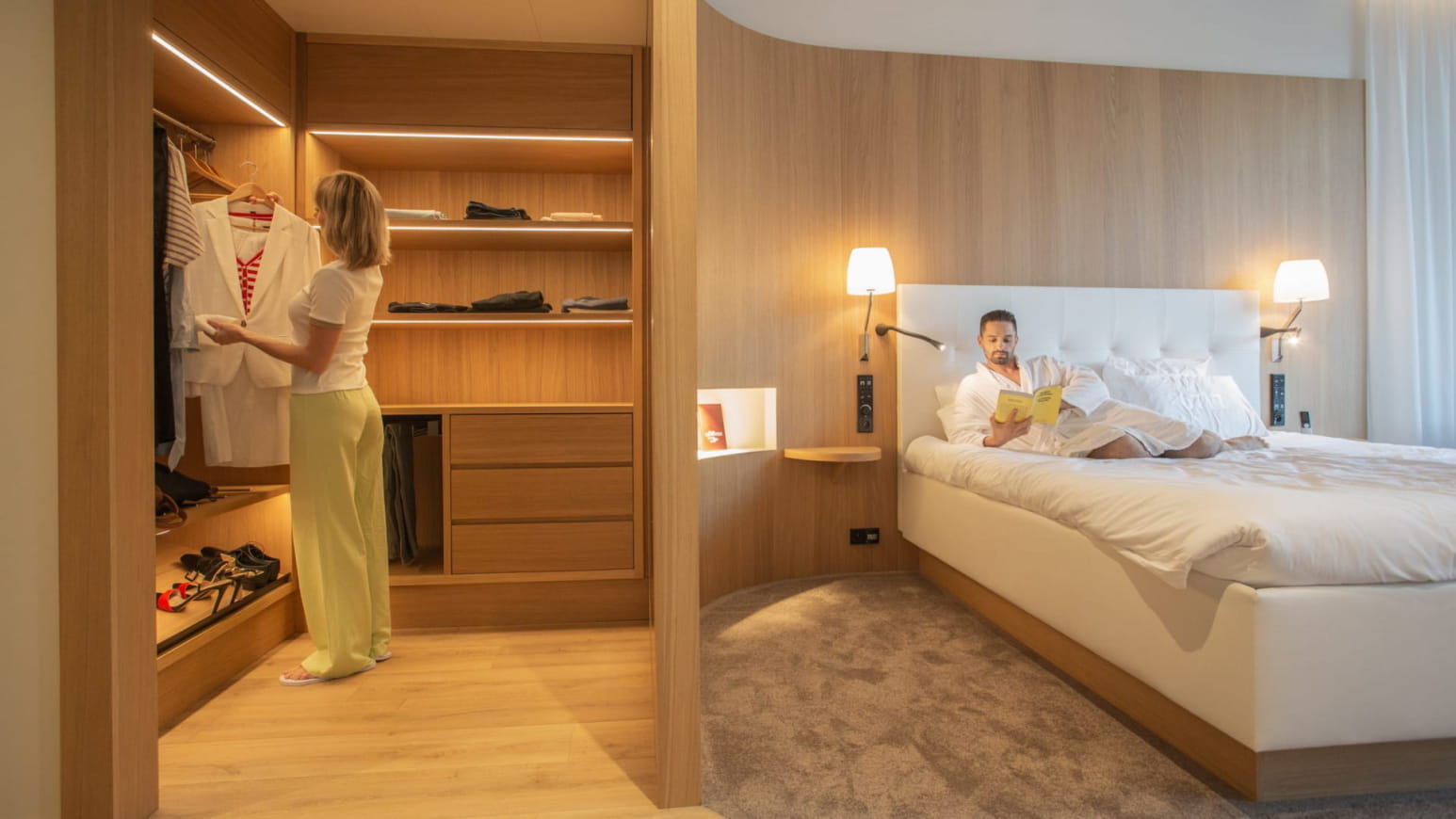 - una nuova Spa interna ed esterna di 2500 m2: piscine interne ed esterne, saune, hammam, vasca idromassaggio sul Rooftop, esperienze sensoriali, sale per trattamenti per massaggi individuali/doppi, sala relax...
