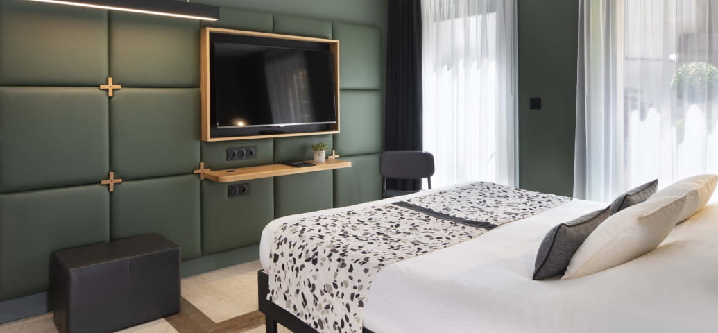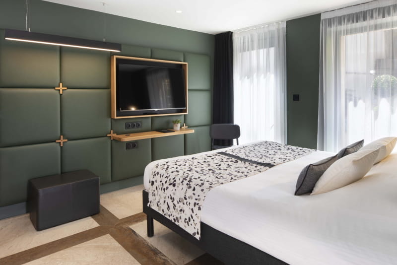 In seguito, passeggiate per le stradine della città per scoprire i luoghi imperdibili che le conferiscono il suo fascino. Se la giornata è piena di impegni, potete anche rilassarvi nella sauna, aperta agli ospiti dell'hotel. La sera, scoprite le specialità regionali durante una cena in città e tornate nella vostra lussuosa camera 4* per un sonno tranquillo. Il mattino seguente, la nostra deliziosa colazione biologica e gourmet vi aspetta per iniziare una nuova giornata.