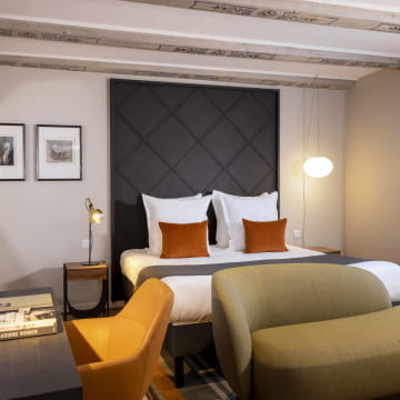 Dall'esterno, l'hotel le Colombier Colmar rappresenta tutto il fascino dell'architettura rinascimentale in una residenza del 1543 e nel suo eccezionale tetto. All'interno, l'arredamento è molto moderno, con mobili di design contemporaneo. Le camere sono piacevolmente progettate per offrire il massimo spazio e comfort di qualità. Godetevi un servizio clienti impeccabile, con un'accoglienza calorosa e un personale attento nel cuore di una struttura prestigiosa.