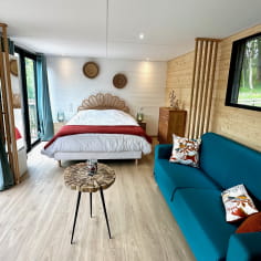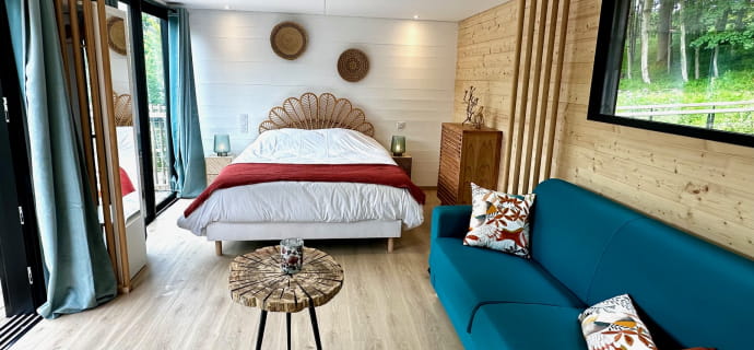 Soggiornate in una delle cabine galleggianti ecologiche di Õthentique. Realizzata in legno, questa insolita sistemazione di 50 m² offre una suite dall’atmosfera calda e naturale e una terrazza di 20 m². Potrete rilassarvi in coppia, in famiglia o con gli amici, grazie al divano letto per 2 persone nello stesso spazio.