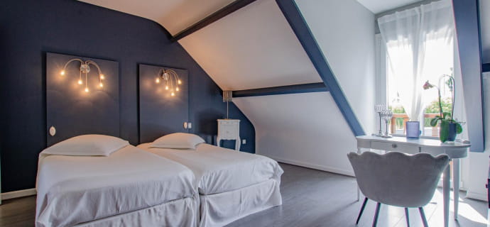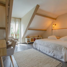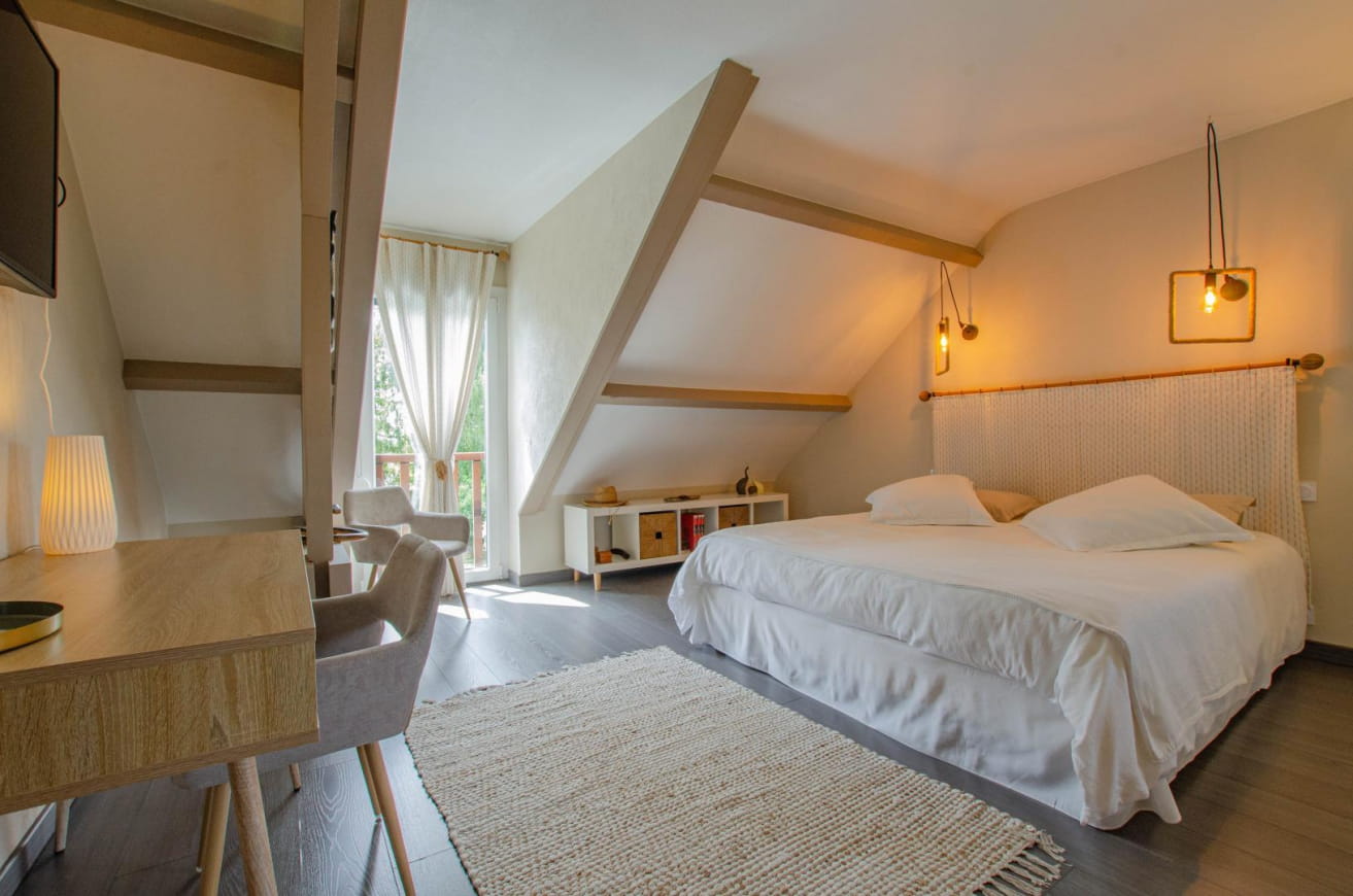 Ogni camera è un vero e proprio bozzolo, decorato con cura per creare un’atmosfera morbida e rilassante. Morbide lenzuola, un’atmosfera accogliente, un vassoio di cortesia e uno spazio ufficio con connessione Wi-Fi ad alta velocità… tutto è stato pensato per il vostro comfort, sia che siate in vacanza o che lavoriate da casa. Al piano superiore, godetevi un ambiente tranquillo, con WC privato, biblioteca e informazioni turistiche per aiutarvi a organizzare le vostre scoperte.