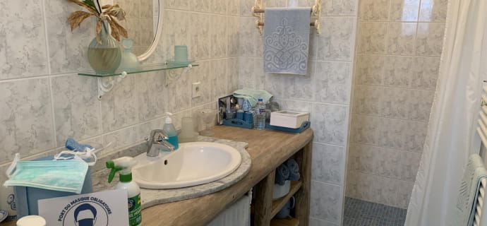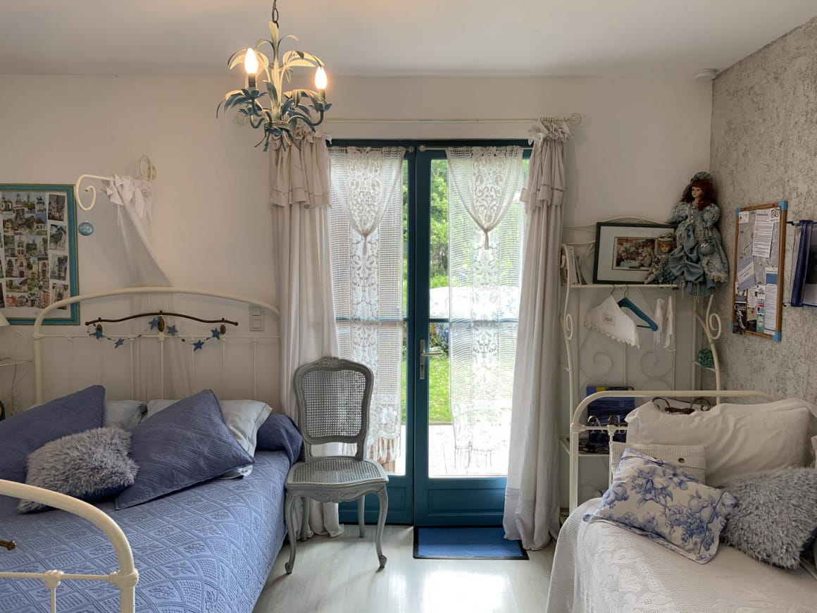 Composta da tre camere da letto con bagno privato, la casa può ospitare fino a 7 persone e 3 bambini. Camera Azur: 1 letto singolo + 1 letto matrimoniale (140 cm). Camera Cobalt: 1 letto matrimoniale (160 cm) + 3 letti per bambini (80 cm e 90 cm). Camera Indigo: 1 letto matrimoniale (160 cm). Accesso a Internet in ogni camera.