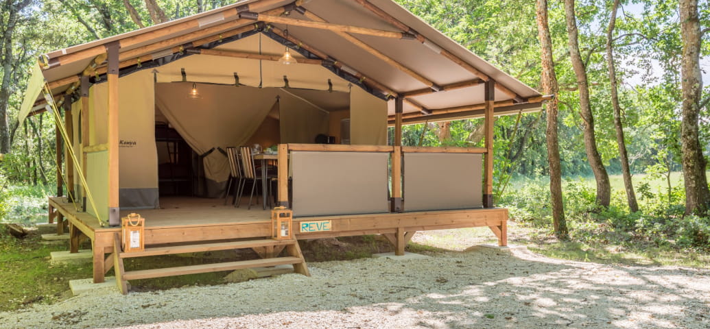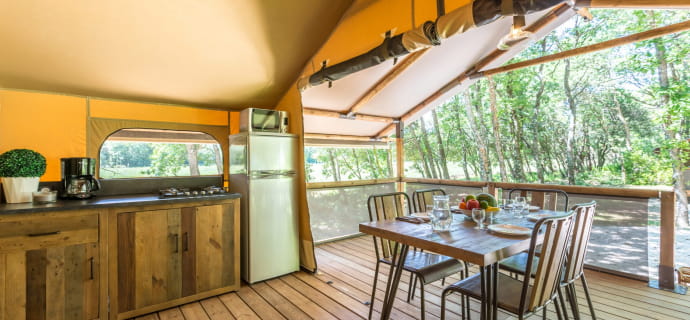 Che si tratti di un weekend romantico o di una vacanza in famiglia, non dimenticate di prenotare la vostra tenda Vintage Lodge al Camping Vallée Verte**** per cambiare scenario!