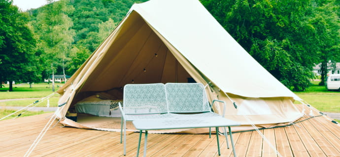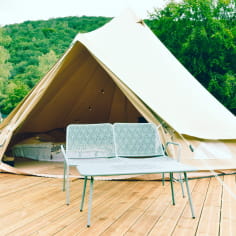 Lungo le rive del Semoy, troverete comode tende acampana per 2 persone. Distribuite su 200 m², ogni tenda offre 28 m² di spazio abitativo, con tutti i servizi essenziali per il vostro comfort. Letto matrimoniale con lenzuola, frigorifero, bollitore, piatti e posate, oltre a tè, tisane e caffè… Tutto ciò di cui avete bisogno per un soggiorno accogliente e all’aria aperta!