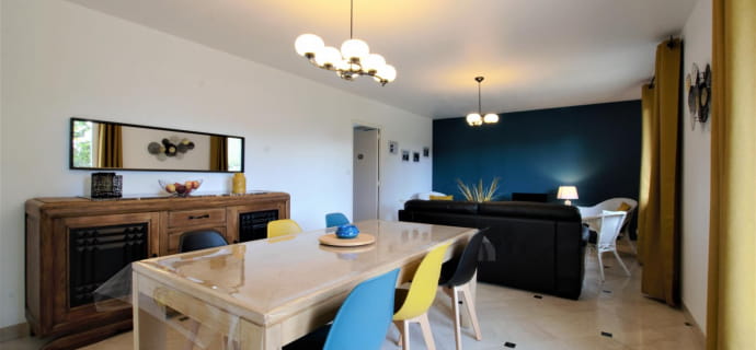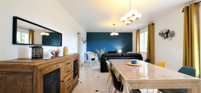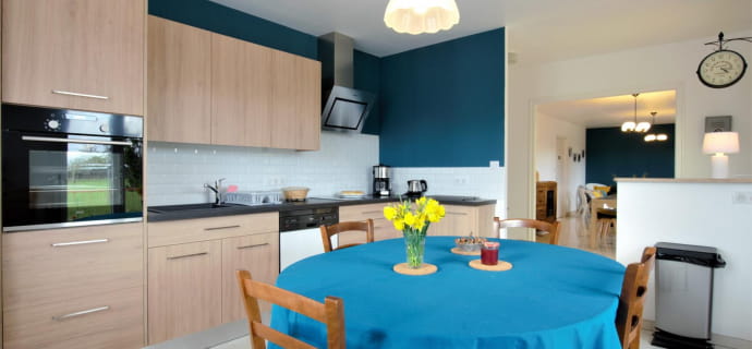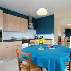 L'alloggio dispone di 3 confortevoli camere da letto, ciascuna con 2 letti singoli, un letto matrimoniale e un letto king size. Vi è anche un ampio soggiorno e una cucina a pianta aperta completamente attrezzata, con una zona pranzo conviviale che si apre su una terrazza. Arredato in uno stile caldo e moderno, questo alloggio vi cullerà in un'atmosfera serena e amichevole per tutta la durata del vostro soggiorno. La struttura è particolarmente adatta ai bambini. Saranno felici di esplorare il vasto parco alberato che circonda l'alloggio.