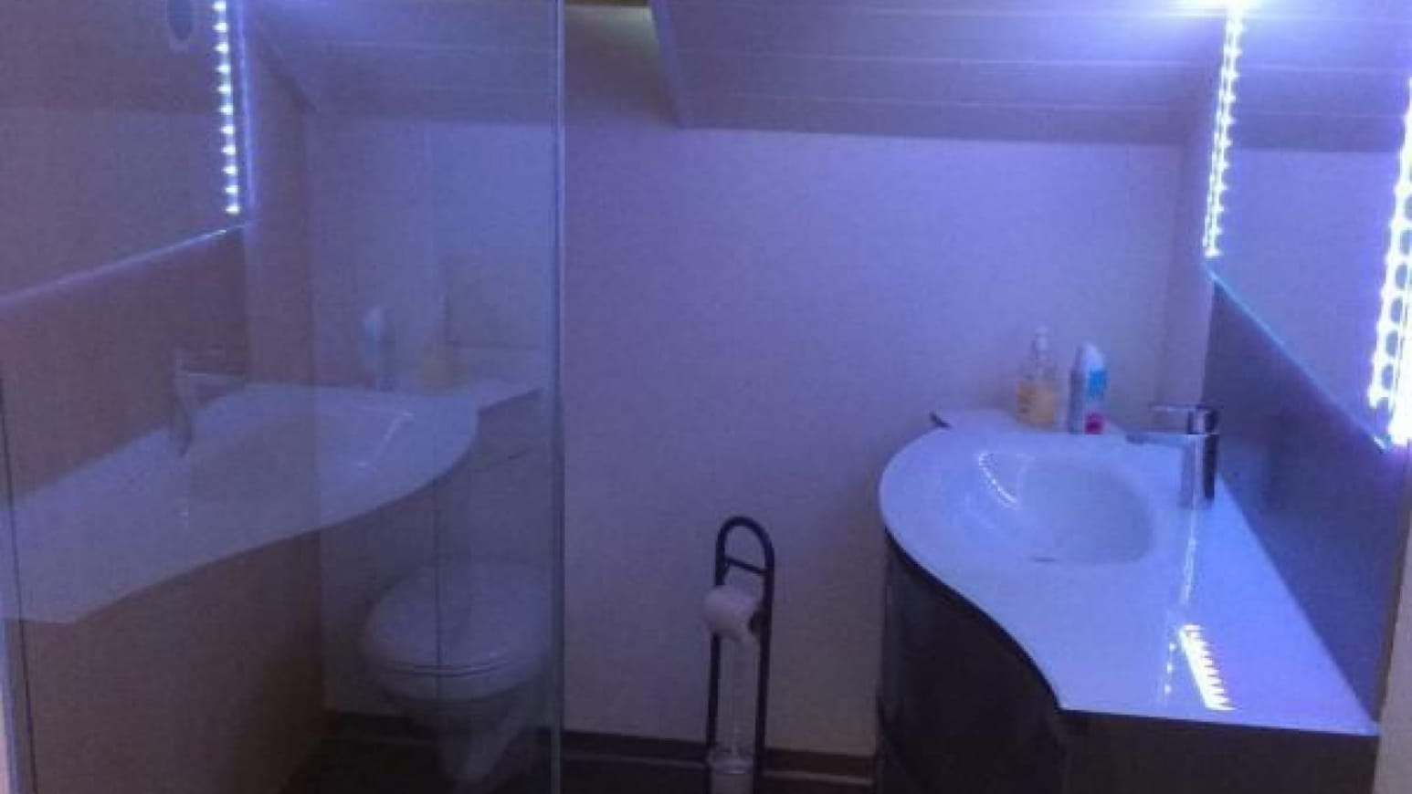 Ingresso al piano terra, ripostiglio con frigorifero e congelatore, lavatrice. Al piano superiore, soggiorno che si apre sulla cucina completamente attrezzata, lavastoviglie, microonde, ecc. Soggiorno con divano letto, TV DTT, 2 camere da letto, 2 letti matrimoniali da 140 cm per 2 persone, soppalco con letto singolo.