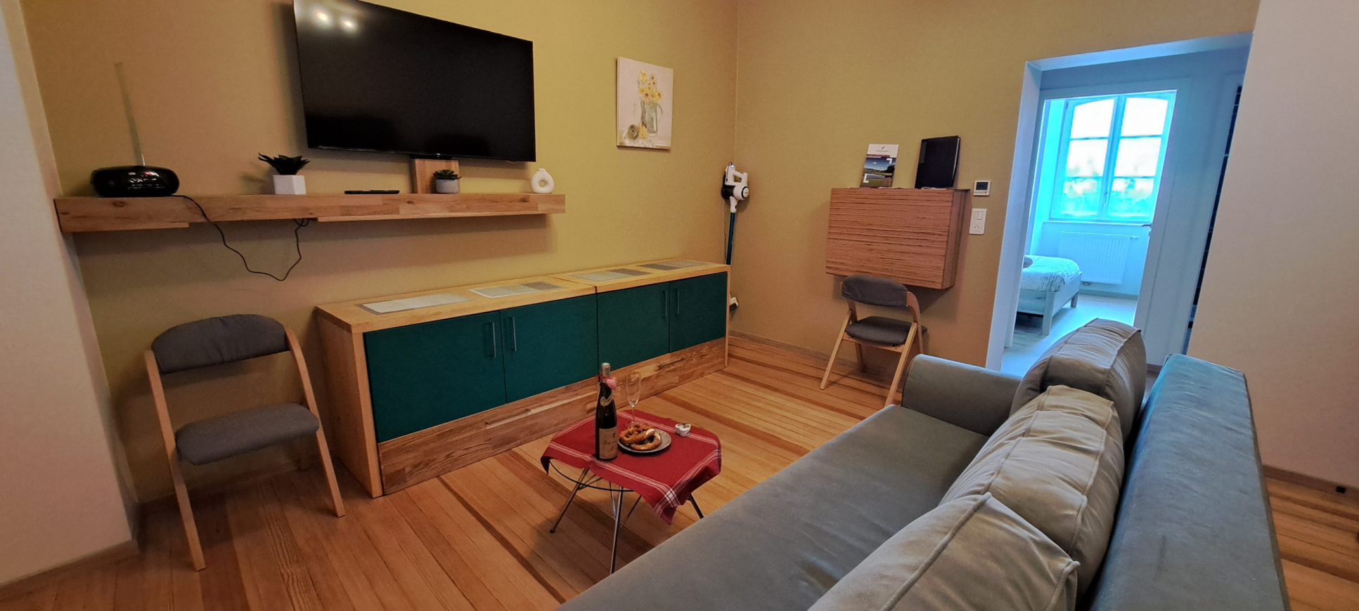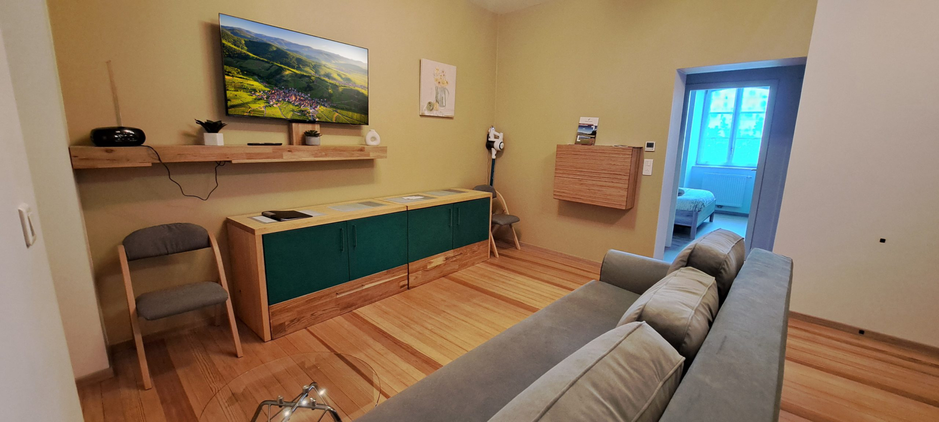 Ospitato all’interno di Les Foudres de Bergheim, un’antica tenuta vinicola di oltre 250 anni, l’appartamento combina elegantemente l’autenticità della pietra antica con il comfort della ristrutturazione contemporanea. Tutto è stato pensato per offrirvi un ambiente caldo e stimolante, a due passi dalla Strada del Vino dell’Alsazia.