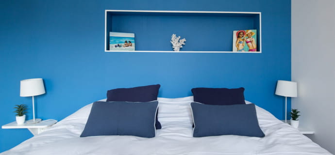 Situato al 1° piano e accessibile tramite le scale, l’appartamento DOLCE VITA è ideale per una fuga a due! Vestiti di un bianco luminoso, con tocchi di corallo e di blu Majorelle, gli interni vi cullano in un’atmosfera tranquilla e calda, particolarmente favorevole all’evasione! Appena varcata la soglia, si apprezza lo spazio abitativo che offre: una camera con letto matrimoniale 180 x 190, ma anche un divano letto per 2 persone che può ospitare famiglie o amici.