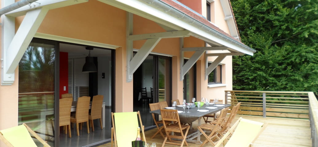 I 220 m² del gîte Couleurs du Lac sono stati arredati con uno stile raffinato per creare un'atmosfera calda e serena. La casa dispone di 4 camere da letto per un massimo di 8 persone, tra cui una camera da letto principale con bagno privato, 2 camere da letto matrimoniali e una camera con 2 letti singoli perfetta per i bambini.