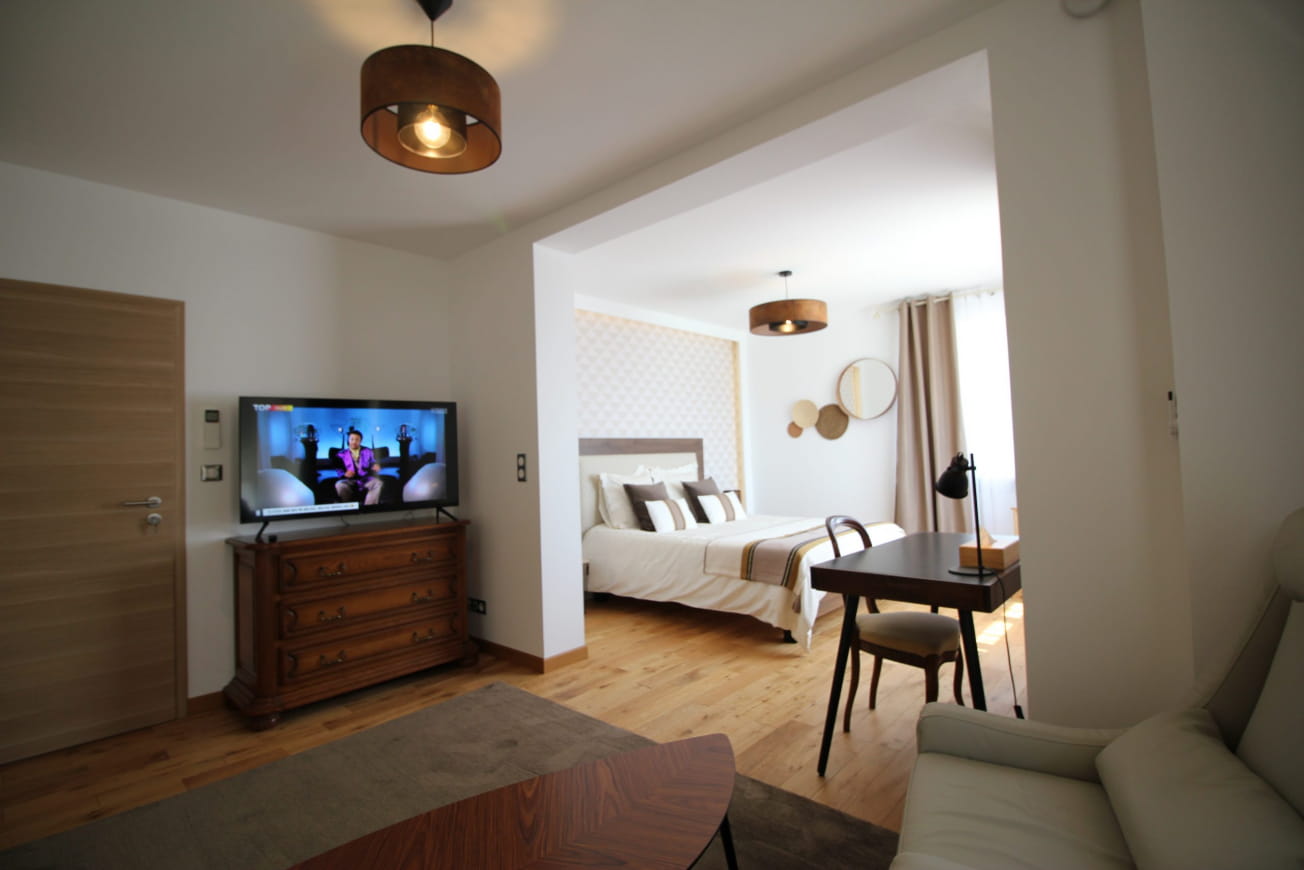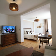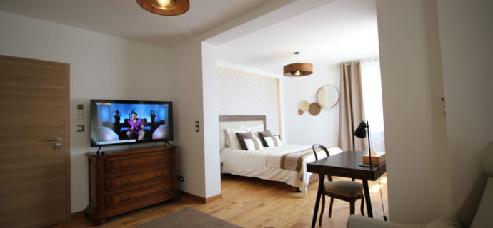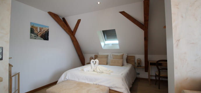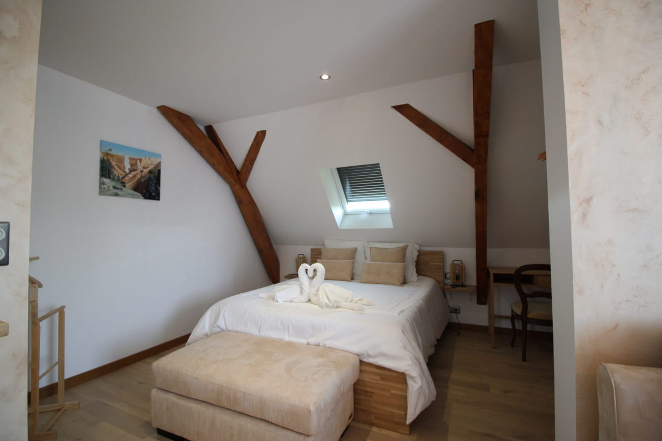 Le 2 camere matrimoniali, Tokay e Muscat, sono spaziose, luminose e ben arredate. Gli interni hanno un'atmosfera sobria, con arredi che mescolano modernità e autenticità. Le travi a vista aggiungono il tanto amato tocco alsaziano. Il soggiorno in questo ambiente finemente arredato, che offre il massimo del comfort e della privacy, sarà sicuramente piacevole.