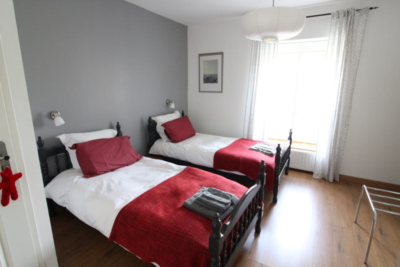 Godetevi 2 suite indipendenti (camera da letto e bagno con doccia separata) al primo piano, con biancheria inclusa. La prima camera ha un letto matrimoniale, scrivania e armadio, mentre la seconda ha 2 letti singoli, scrivania e armadio. Terzo bagno vicino alla zona giorno al piano terra.