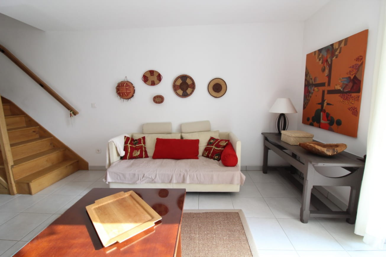 Ampio soggiorno con cucina completamente attrezzata (forno, lavastoviglie, lavatrice, robot da cucina, ecc.) che si apre sul salotto con televisione, connessione internet Wi-Fi e impianto hi-fi. Salotto che si apre sulla terrazza con mobili da giardino e sedie a sdraio.