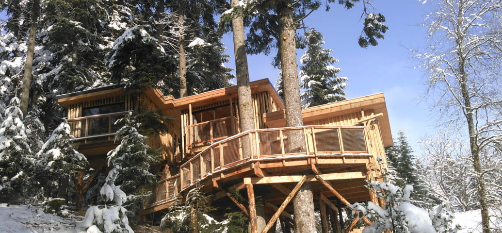 10 accoglienti e lussuose cabine arroccate tra gli alberi a 9 km da Gérardmer. Un alloggio insolito di grande comfort, eco-costruito, in mezzo alla natura, per trascorrere una breve pausa nella pace e nella tranquillità... Benessere e bagno nella foresta garantiti, cabine riscaldate e isolate, aperte tutto l'anno. Alloggio e prima colazione gratuiti per i bambini, l'ideale per fare il pieno di energia in famiglia o in coppia in un alloggio straordinario dal comfort eccezionale...