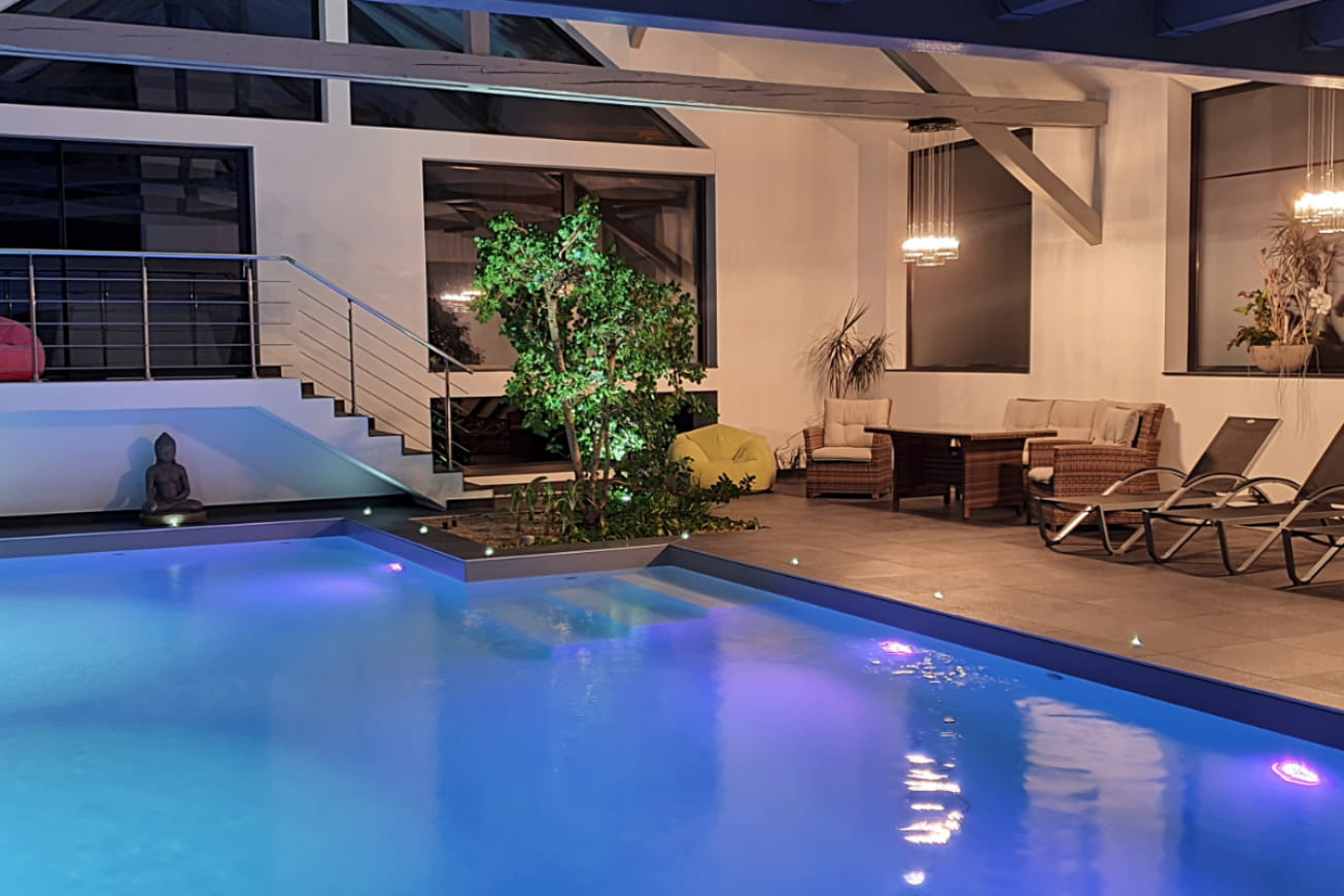 All’esterno, potrete godere dei giardini zen, del laghetto, dell’area per le bocce e, per il vostro benessere, della piscina coperta.