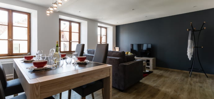L’alloggio si trova accanto alla casa romanica nel centro della città, vicino a tutti i negozi e servizi.